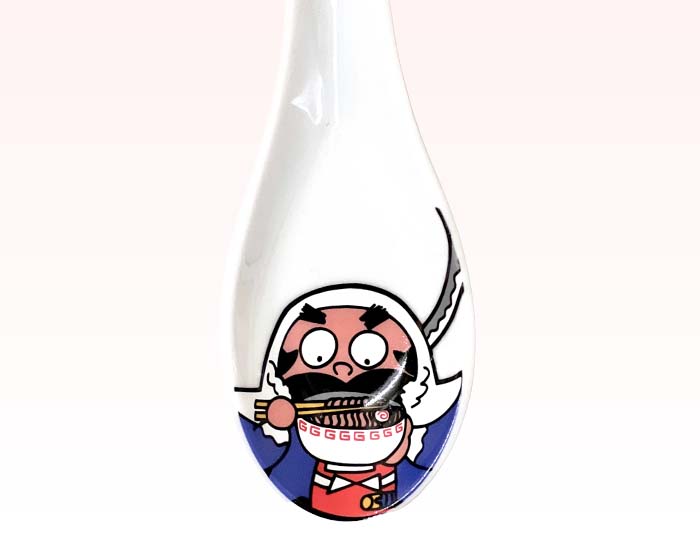 弁慶ちゃんどんぶり2個(赤・白)と、弁慶ちゃんレンゲ2本セット