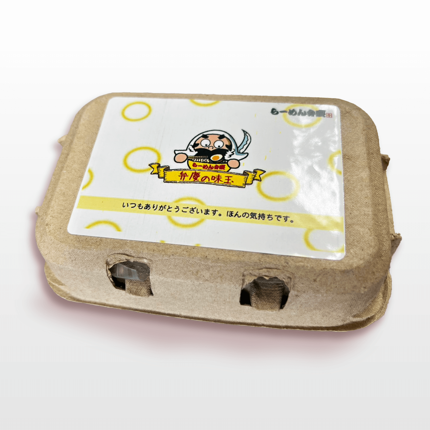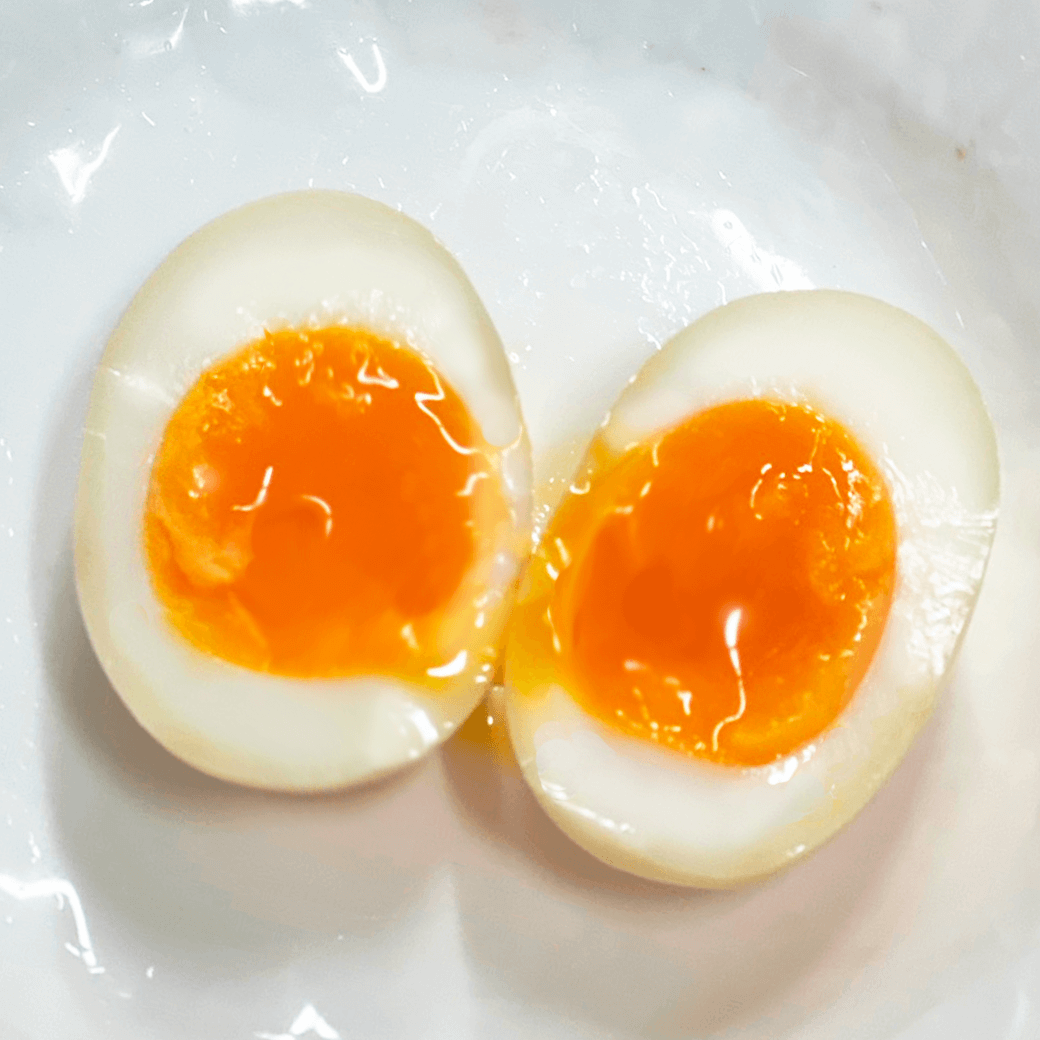 弁慶の醤油とんこつに使用している特製醤油だれに漬け込んだ、半熟タイプの味付けたまごです。